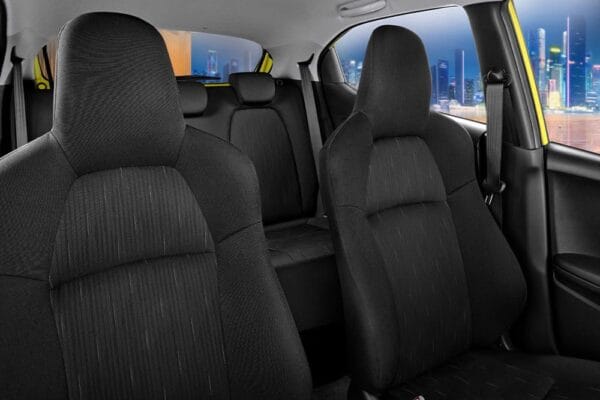 Berkendara nyaman dengan sandaran kepala di baris pertama dan kedua yang dapat disesuaikan serta jok kursi dengan aksen orange stitch yang memberi kesan sporty dalam interior. Sporty Meter Cluster with RS Logo.